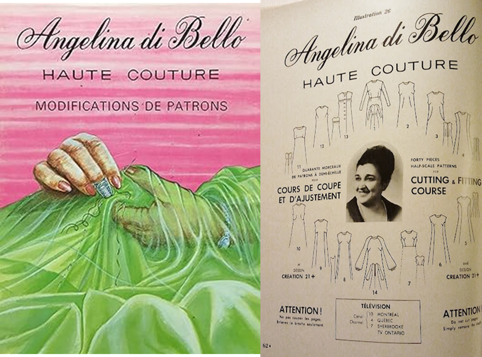 L’Italo-Montréalaise Angelina di Bello fonde sur la rue Crescent une école de couture où elle enseigne les bases du design et de la confection. Dès 1946, elle dirige sa propre boutique de haute couture et, en 1971, publie son premier manuel, Haute couture, un ouvrage devenu un classique avec plus de 20 000 exemplaires vendus. D’autres titres suivront, témoignant de son désir constant de transmettre son savoir. Pendant plus de trente ans, ses émissions télévisées, diffusées sur diverses plateformes, ouvrent les portes de la couture à un public immense. Des milliers de femmes apprennent à coudre grâce à ses émissions de télévision et à ses volumes et patrons de couture. di Bello devient alors une figure familière, une référence incontournable pour quiconque souhaite apprendre à coudre avec précision et élégance. Pour le designer Jean-Claude Poitras, sa contribution majeure tient à la démocratisation de la couture : elle a su rendre cet art accessible sans jamais en sacrifier l’exigence et la rigueur.